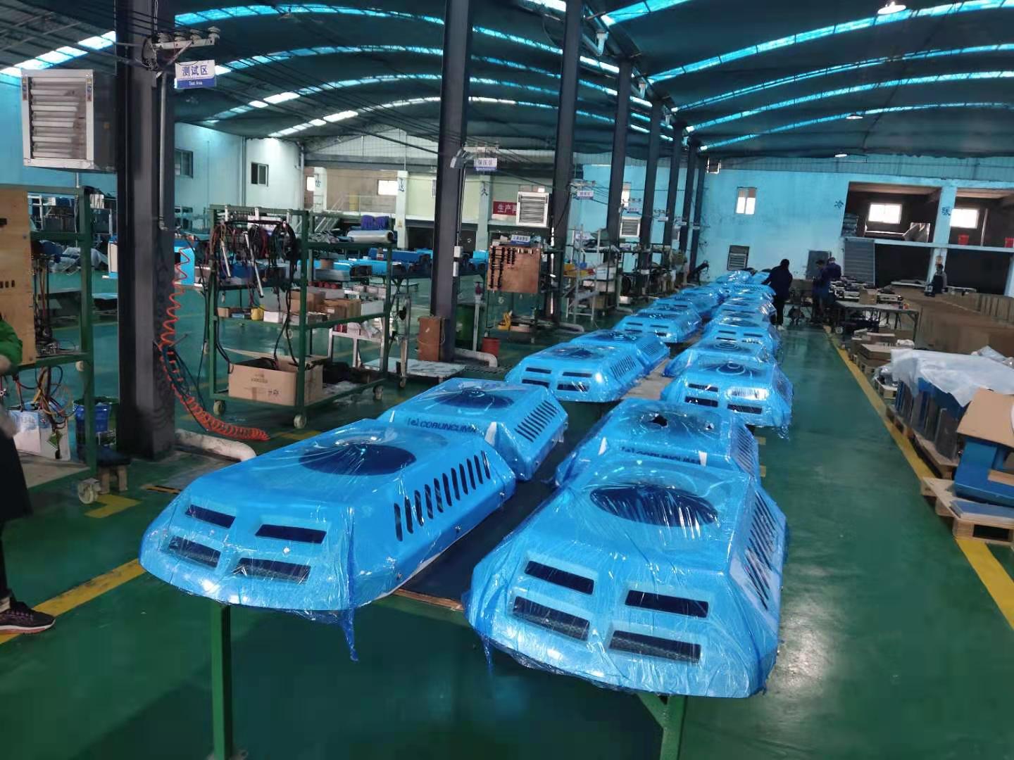 批量生產(chǎn)的制冷機(jī)組 冷凝器 裝箱待發(fā)
